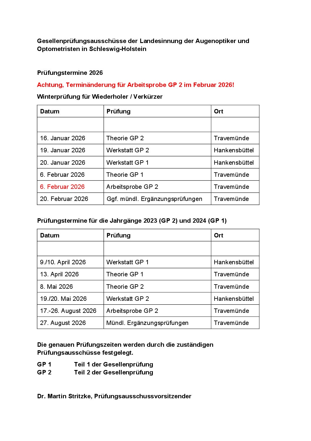 Prüfungstermine Gl